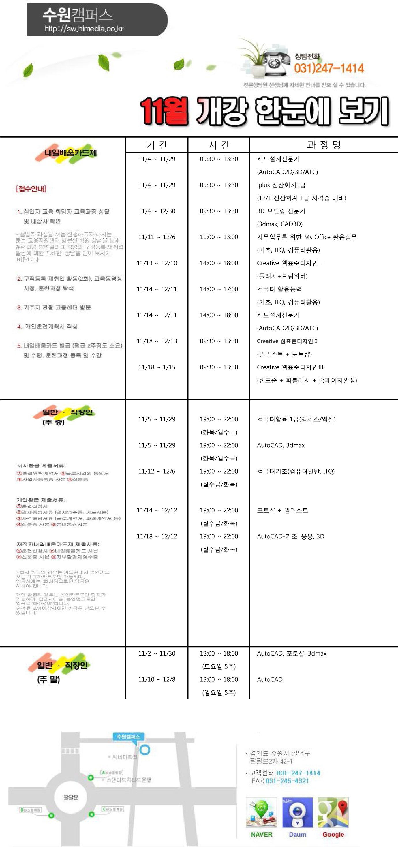 11월 개강일정 한눈에 보기