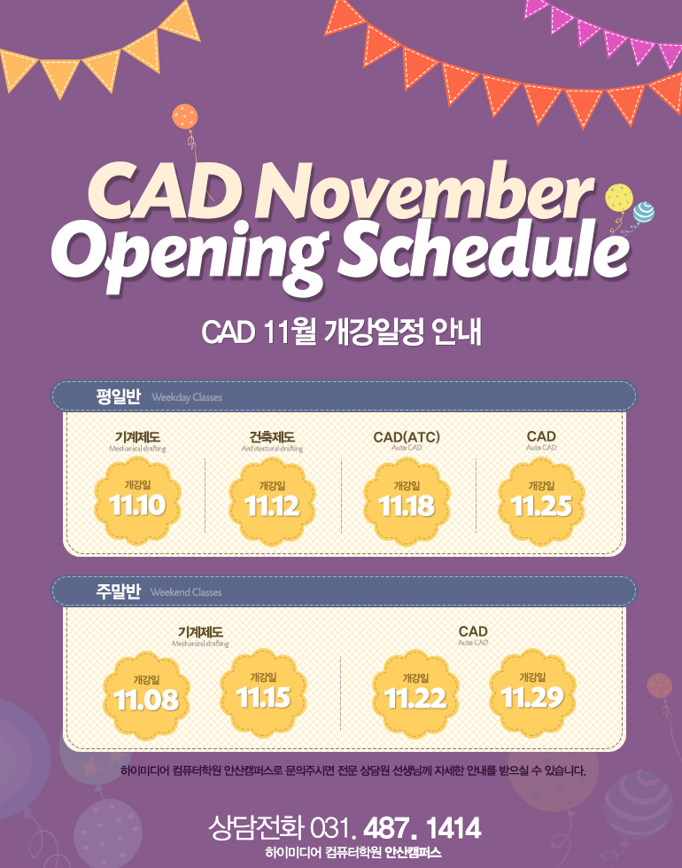 11월 CAD 개강일정 안내