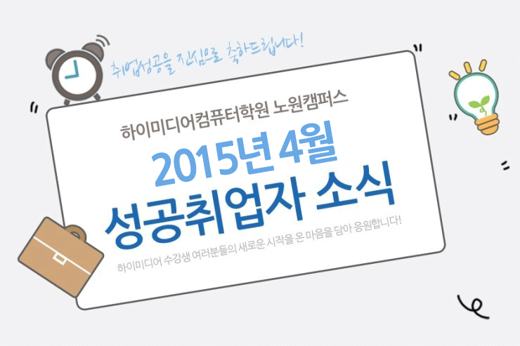 하이미디어컴퓨터학원 노원캠퍼스 2015년 4월 성공취업자 명단입니다.